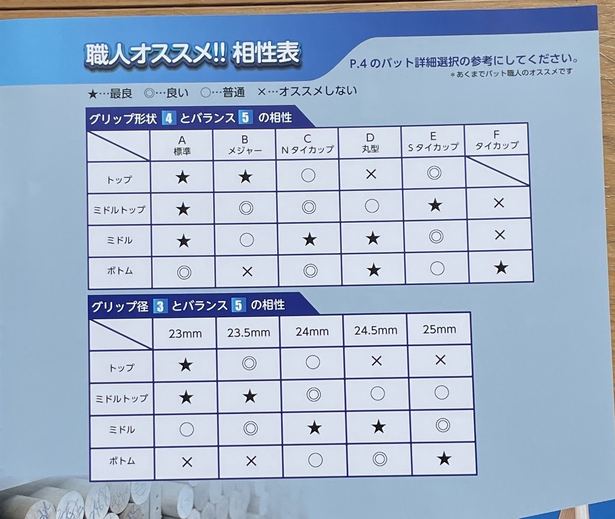 | グリップ形状 | A.標準, B.メジャー, C.Nタイカップ, D.丸型, E.Sタイカップ, F.タイカップ |